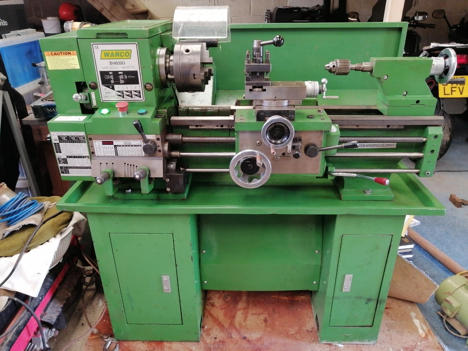 Warco BH600G Metal Lathe with powerfeed. 230v on Cabinet Stand with accessories.